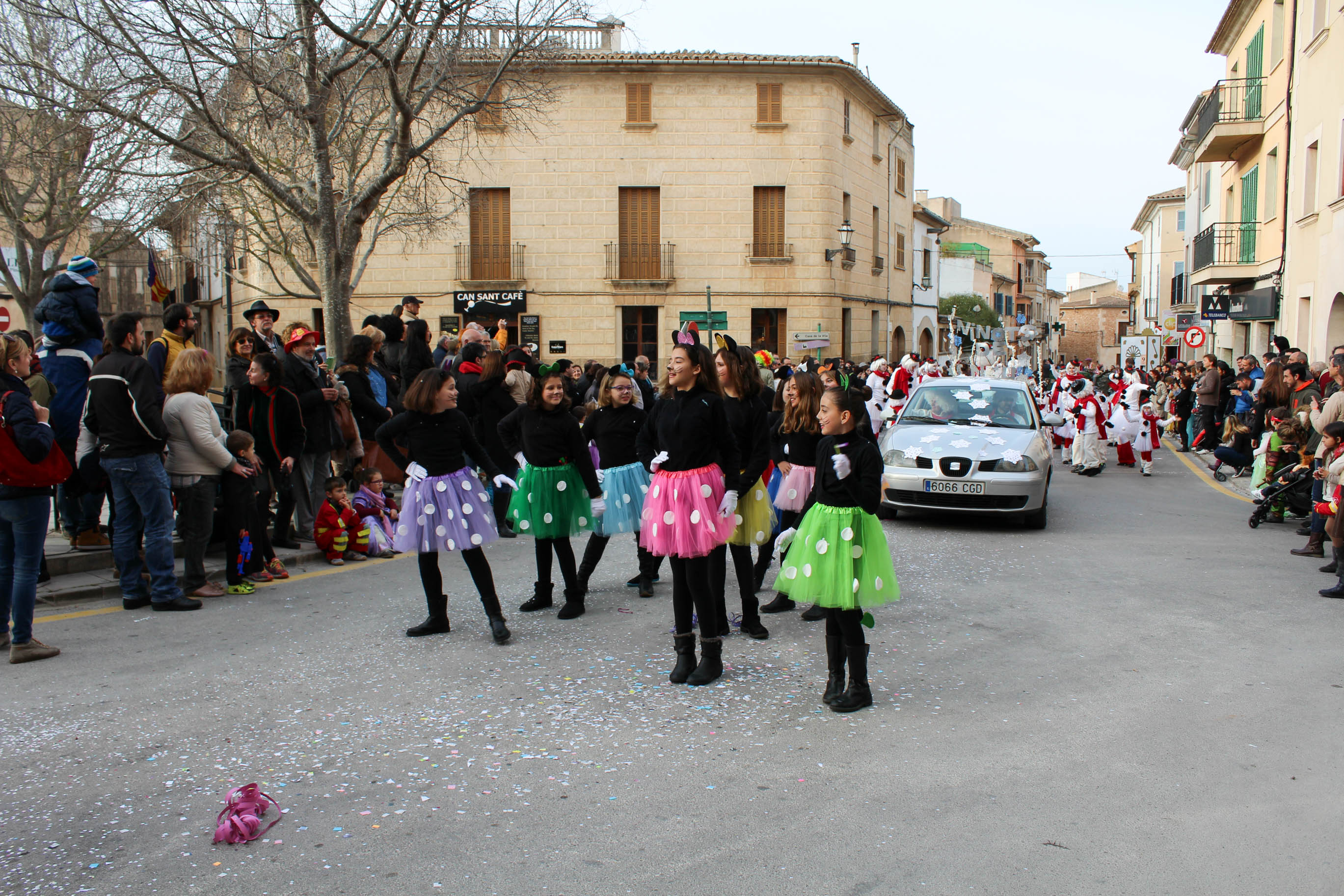 398 persones distribuïdes en 18 comparses. Aquests són els grans números de la XXVII Rua d’Algaida que es va celebrar ahir horabaixa a partir de les 16:30 hores. Mitja hora abans les diferents comparses s’anaren concentrant en el carrer Pare Bartomeu Pou. Mentre s’anaven col·locant, els membres dels jurat de la Rua format per les diferents entitats i associacions del poble i partits polítics, anaven fixant-se en les carrosses i les comparses per tal de poder puntuar. Just després els disfressats feren el tradicional quadrat, amb la incorporació de la comitiva d’en Camestortes, pels carrers de Sant Joan, Migdia, d’Amargura, de la Unió, de la Roca i de s’Aigua.