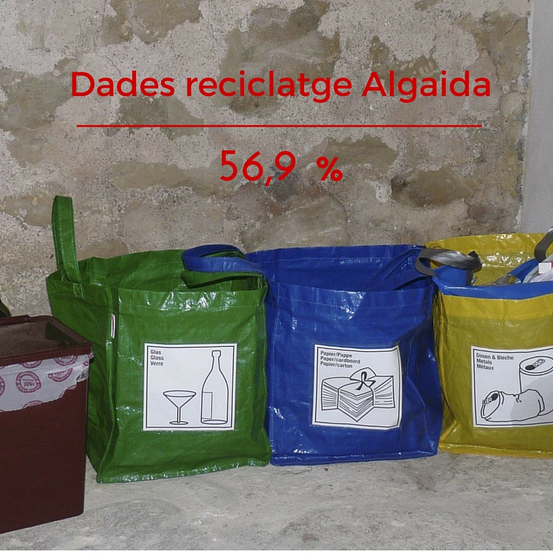 Pel que fa a Algaida al 2015 Algaida ha tengut una millora notable ja que s’ha reduït el rebuig un 5,5%, si bé apuja als 43,1 %. Del 56,9 % restant que es recicla, el 8,7 % correspon a paper, un 8,6 % es correspon amb el vidre, un 10,2 % correspon als envasos i un 29,4 % correspon amb orgànica, segons es desprèn del gràfic que ha informat l’Ajuntament.